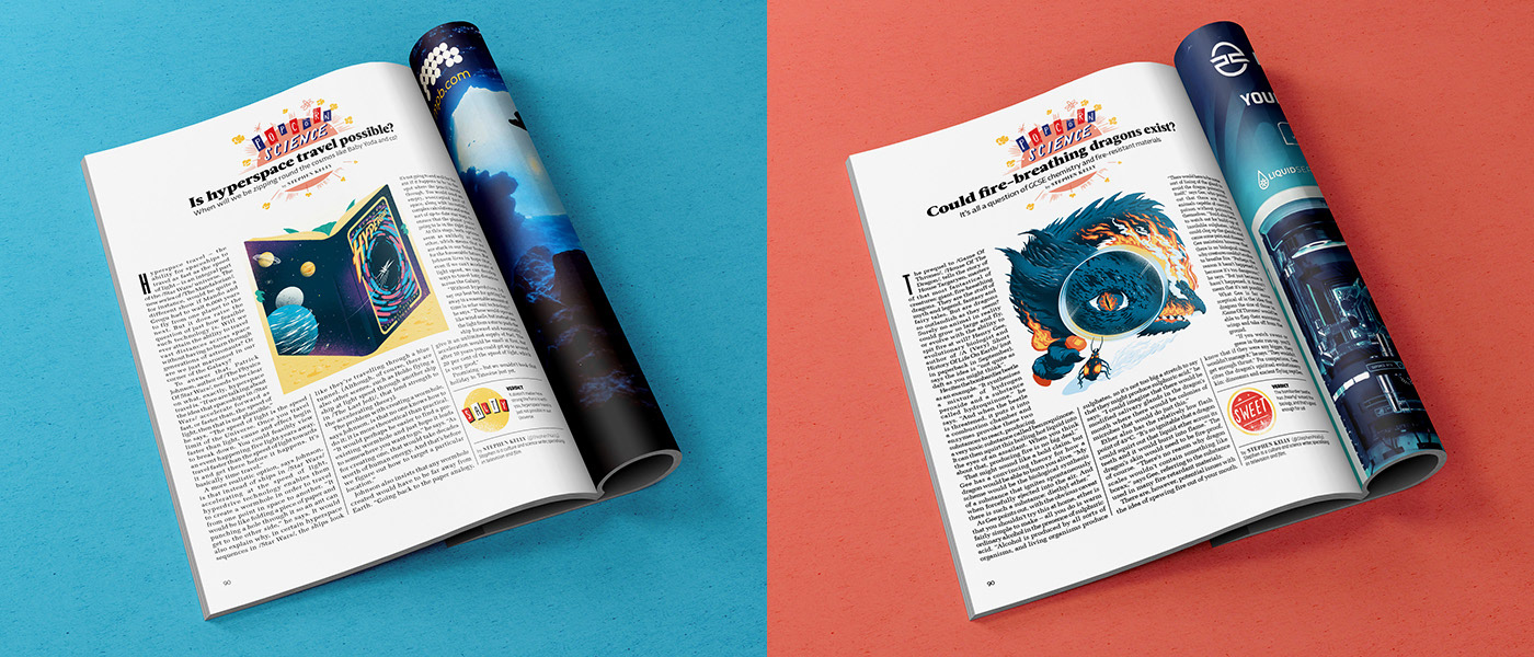 The scientists will either bolster or debunk with facts the ideas presented in the movies are actually tangible or not. I've had the pleasure to be commissioned a couple of times for this feature asking the questions 'Is hyperspace travel possible?' and 'Could fire-breathing dragons exist?' Fun commissions to work on.