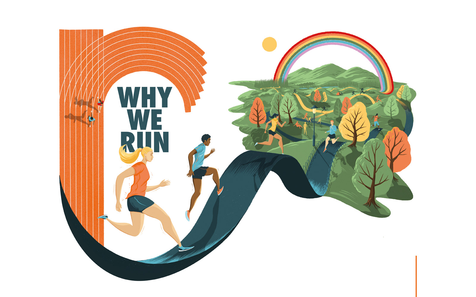 Editorial illustrations for the November issue of Runner's World Magazine to accompany a feature inspired by peoples tales and motivations as to why they run.