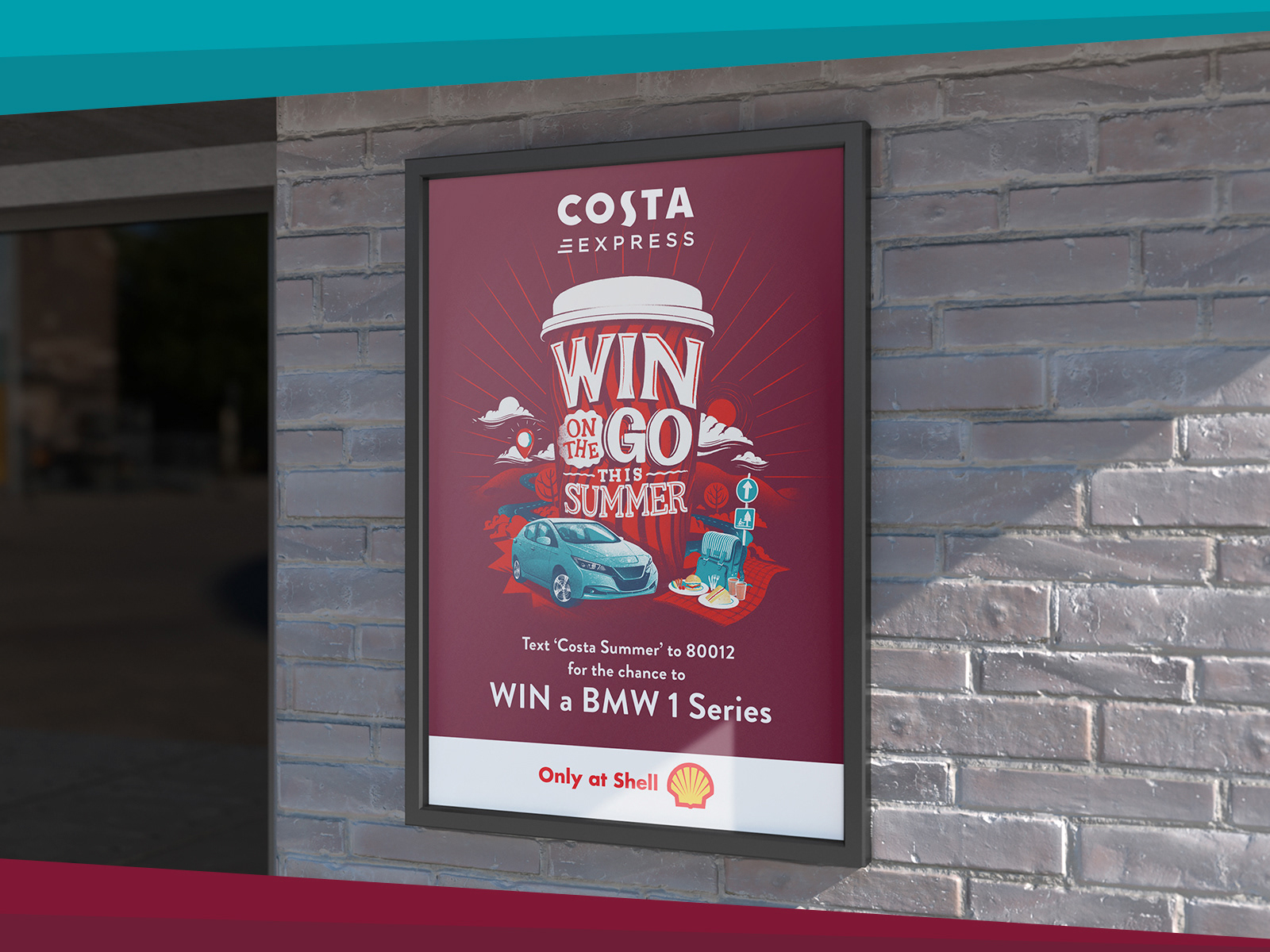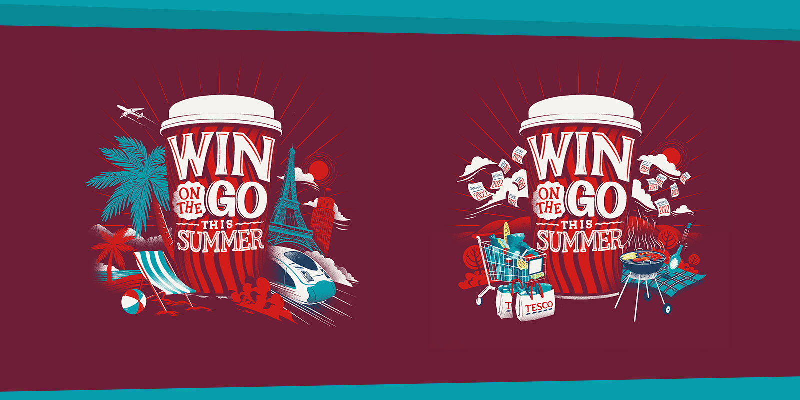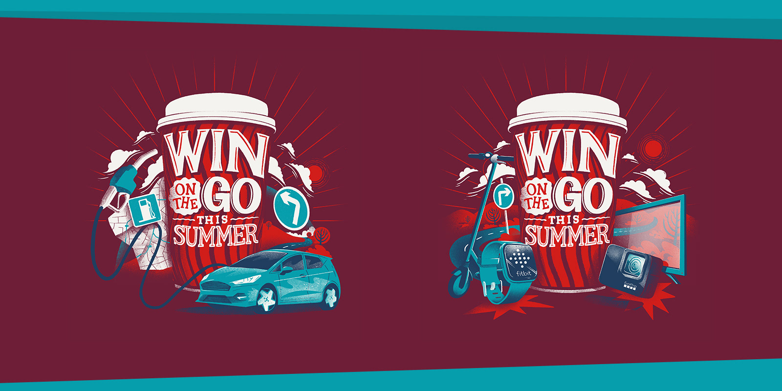 In the early summer of 2021 I was commissioned by Mesh Marketing on behalf of Costa Express to produce a series of illustrations to help promote their 'Win on the go' summer promotion campaign. The illustrations appeared on a selection of POS materials in petrol stations across England.
